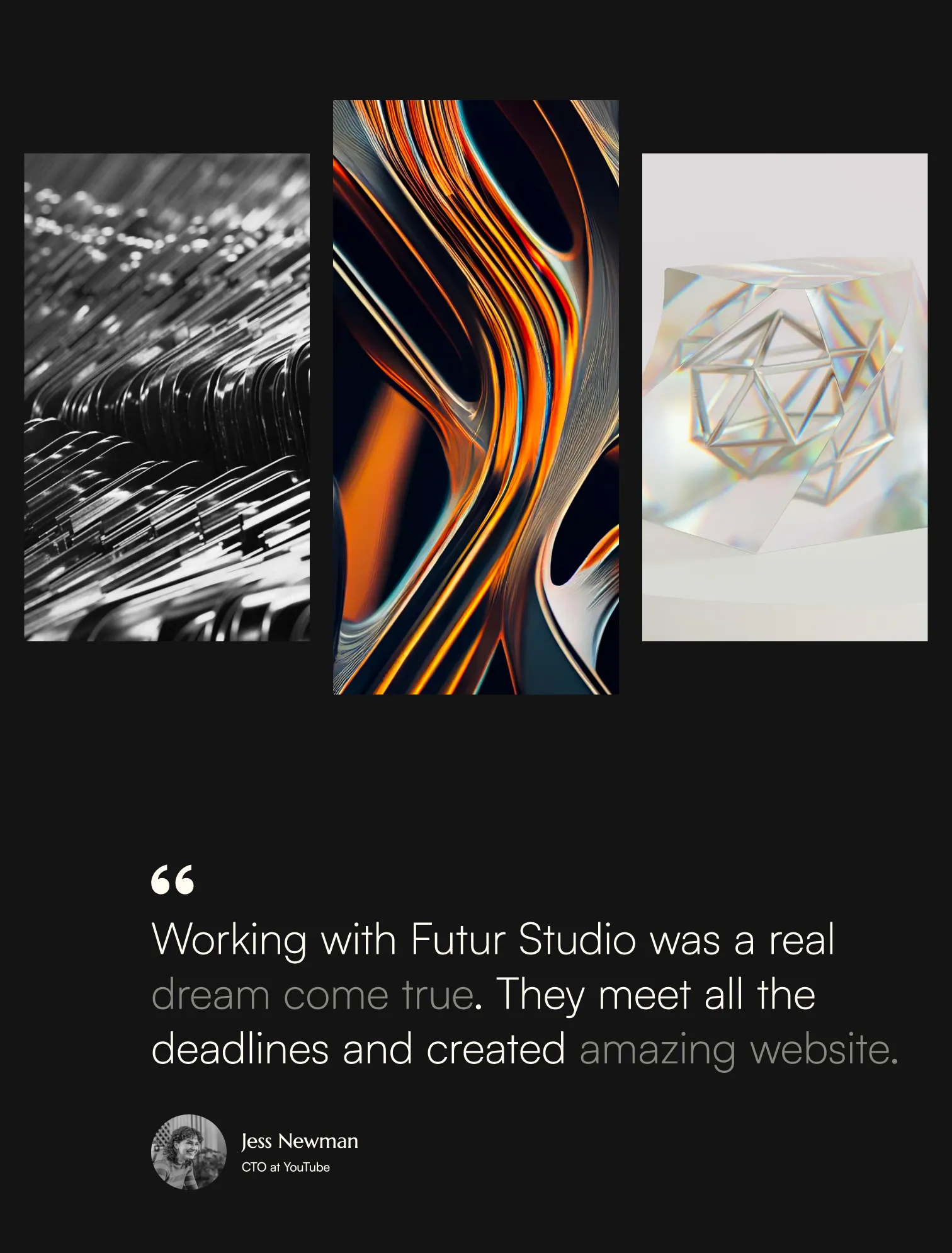 Futur Studio Template is optimized to offer a frictionless experience on every screen. No matter how you combine our sections, they will look good on desktop, tablet, and phone.
