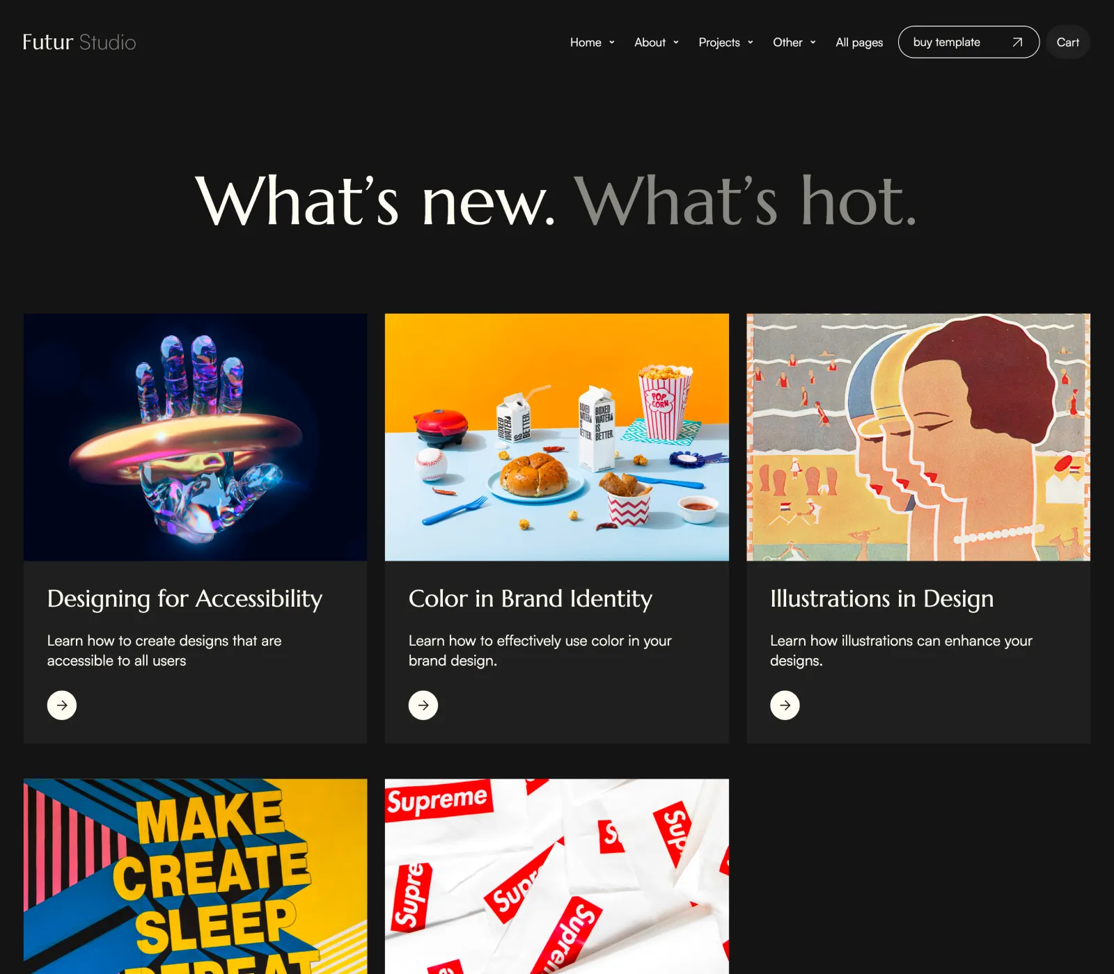 Futur Studio includes a blog and projects collection that are made on the powerful Webflow CMS. This will let you add new content extremely easily.