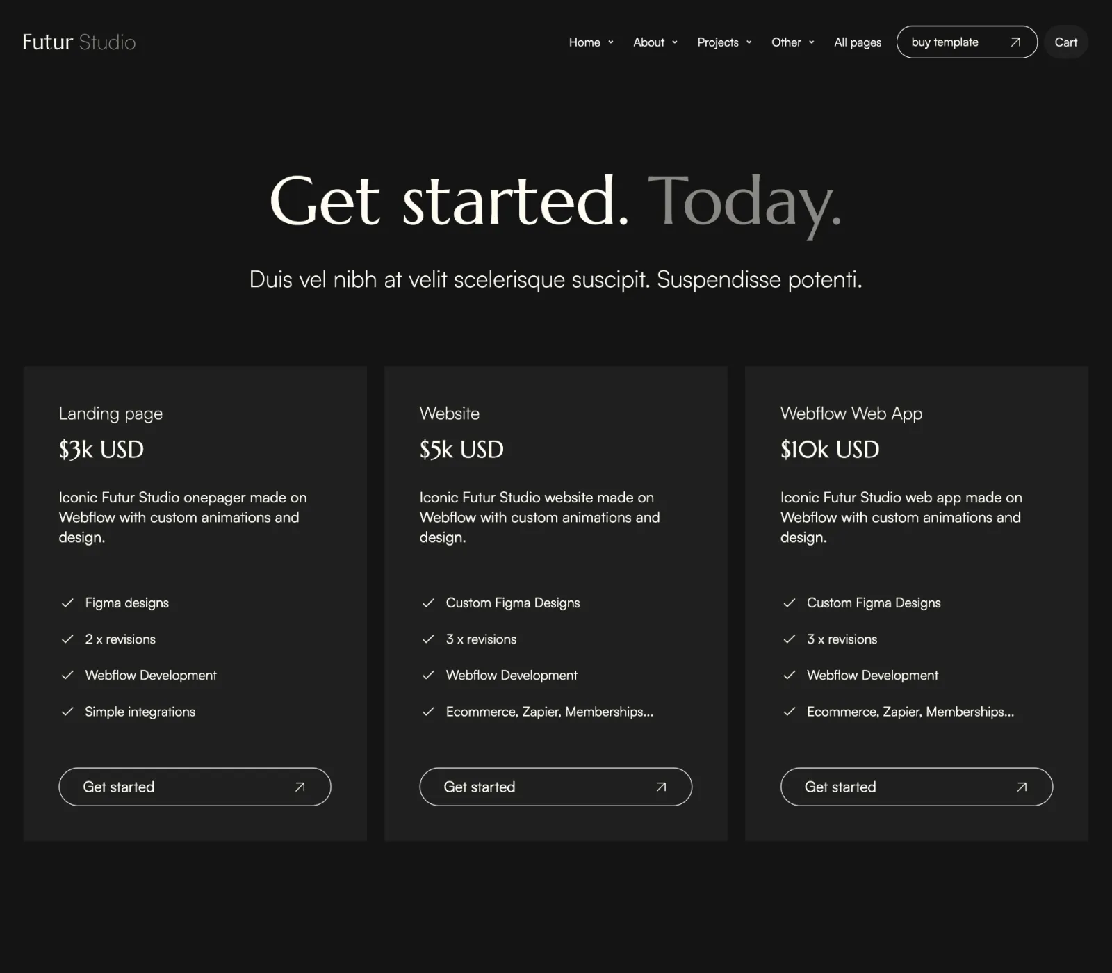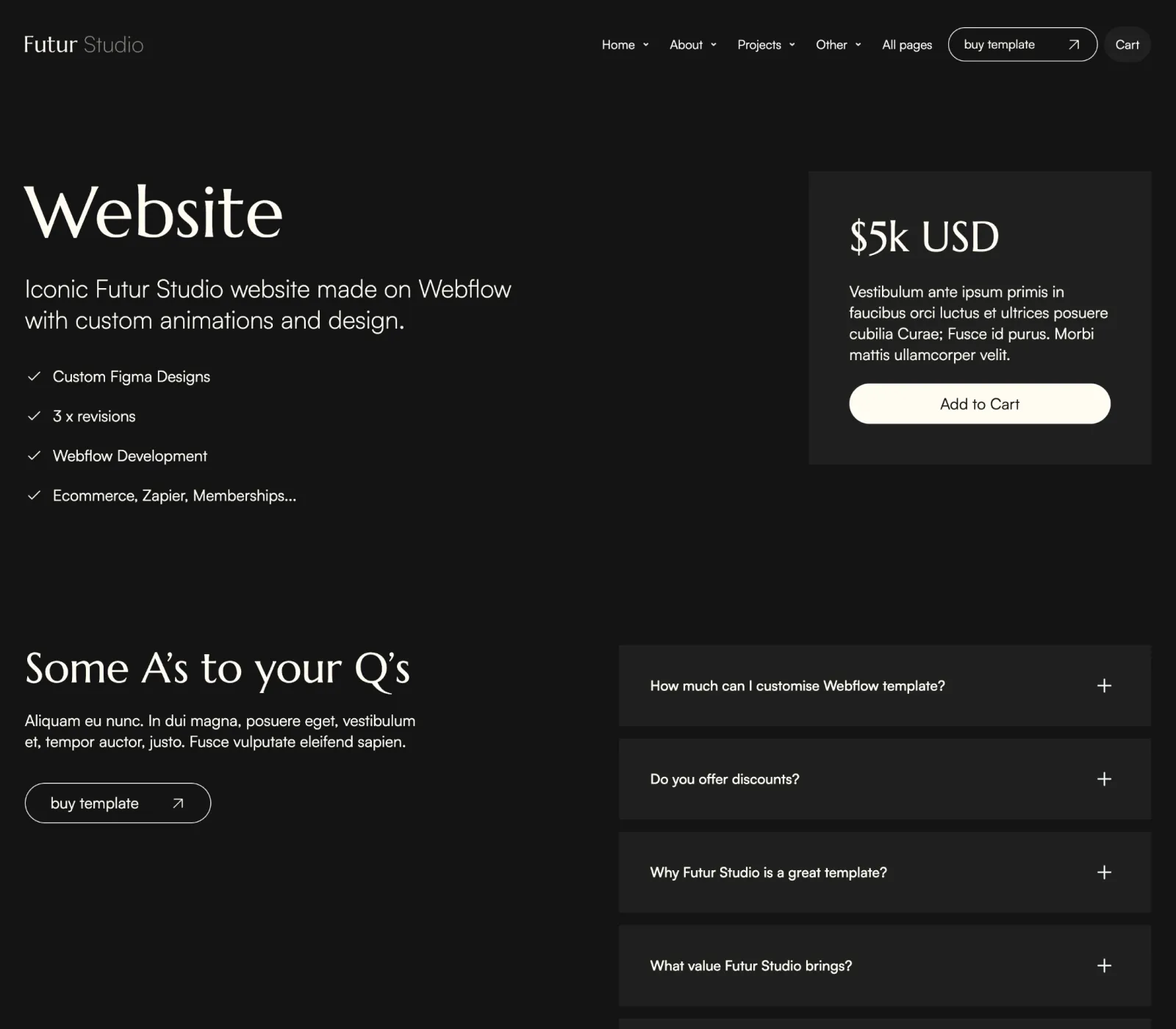 Futur Studio Agency Template comes with eCommerce set up, so you can start selling your services straight away.